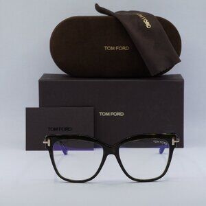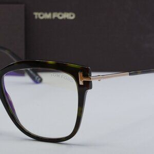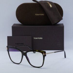 Tom Ford FT5704-B 052 Cat Eye Eyeglasses 54mm - Havana/Clear Blue Light Block