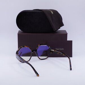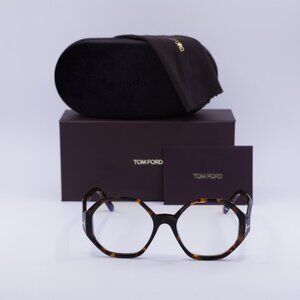 Tom Ford FT5967-B 052 Geometric Eyeglasses 53mm – Havana/Blue Light Block