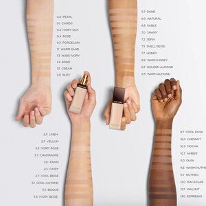 A foundation that defies conventions and perfects the skin for a look of precision blur. Sculpted softness. Blurred precision. This luxe, lightweight liquid formula applies seamlessly for a soft-matte finish and extended 24-hour wear. Soft-focus microsphere powders diffuse light and help control oil, while hyaluronic acid and powerful antioxidants nourish and protect skin.
