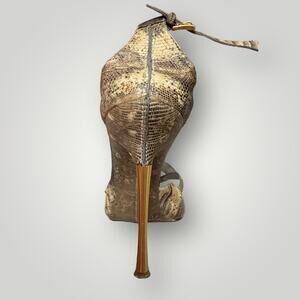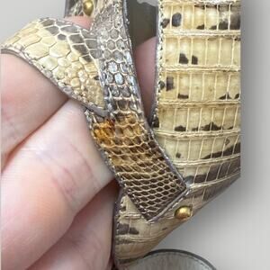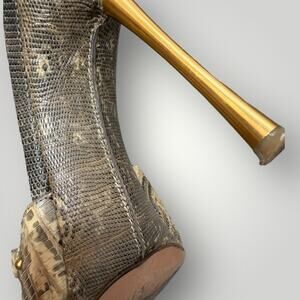 Tom Ford Genuine Exotic Leather Gold Stiletto Heels Python Pattern Strappy Sandals sz 9