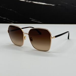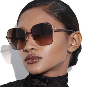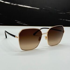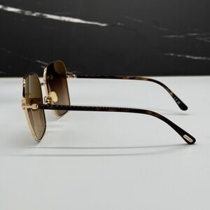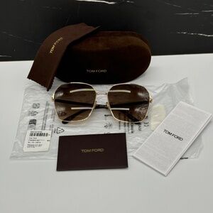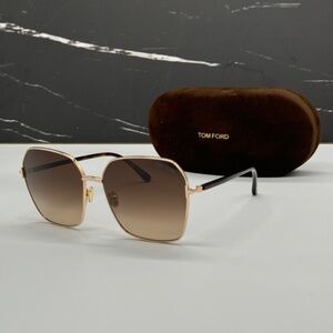 Elegant Tom Ford sunglasses with gold frames. Brown gradient lenses. Perfect for a stylish look.