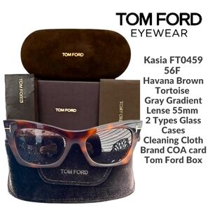 Tom Ford Kasia FT0459 Havana Brown Tortoise Gray Gradient Lense Sunglasses Cases