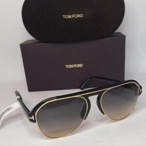 Tom Ford MARSHALL FT 0929 Shiny Black/Grey Brown Shaded 58/16/145 unisex Sunglasses Details Styled with gold accents surrounding the frame, these sunglasses are finished with the brand's signature T temple detail. Gradient lenses Plastic/polycarbonate Made in Italy SIZE 58mm lens width 16mm bridge width 145mm temple length