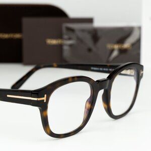 Tom Ford Men Eyeglasses Havana Clear Blue Light Block Square FT5808 052 BRAND NEW