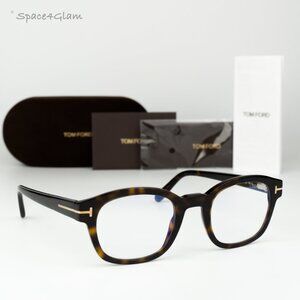 Tom Ford Men Eyeglasses Havana Blue Light Block Square FT5808 052 BRAND NEW