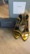 Elegant metallic gold heels with chain detail. Perfect for a glamorous look.
