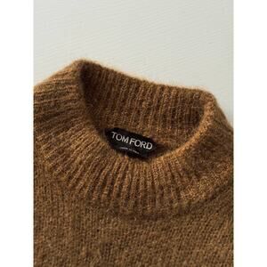 Luxurious mohair-blend sweater from Tom Ford, crafted in Italy. Features a thick ribbed crewneck, plush texture, and a rich brown tone. Warm, soft, and elegant—ideal for layering in colder months. Rare piece with high-end materials and timeless silhouette.
