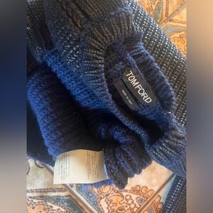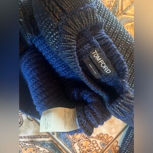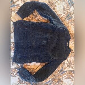 Stylish navy blue sweater. Ribbed cuffs and hem. Perfect for any occasion.