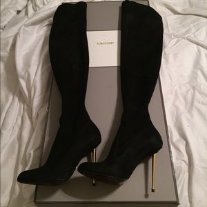 Tom Ford suede over-the-knee boot with signature golden hardware. Worn a handful of times!
