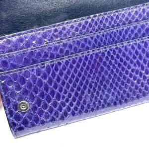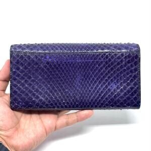Gorgeous Python Leather TF Long Wallet with metal logo across the front & finished in a beautiful purple color.