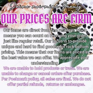 Please note that we are unable to hold products or trade. We are unable to cancel or otherwise change your sale after purchase. Per Poshmark, all sales are final. Therefore we cannot allow for returns or exchanges.