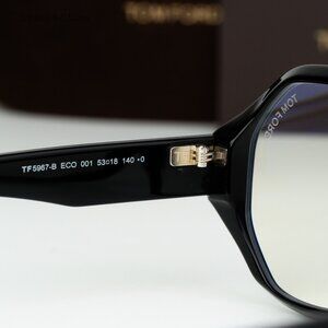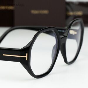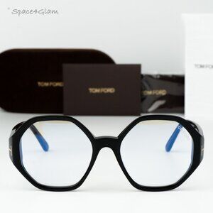 Tom Ford Woman Eyeglasses Black Blue Light Block Round FT5967-B 001 NEW AUTHENTIC