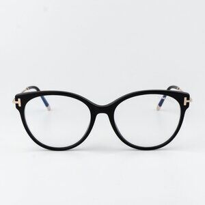 Tom Ford Women Eyeglasses Black Rose Gold Blue Light Block Round FT5770 001 NEW