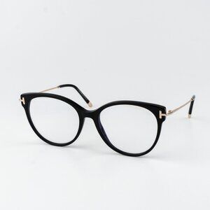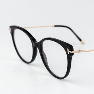 Tom Ford Women Eyeglasses Black Rose Gold Clear Blue Light Block Round FT5770 001 BRAND NEW
