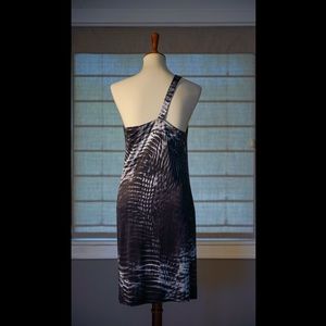 Tom Ford for Gucci, Spring-Summer 2000 one-shoulder dress with abstract print throughout, thin single strap and tonal stitching.