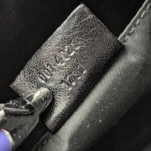 Silver hardware, and a flip tab top closure.