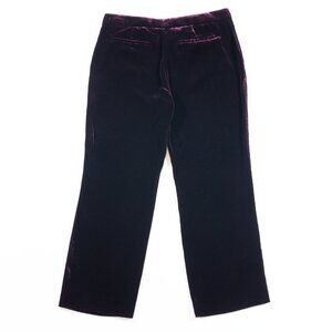 Tom Ford plum velvet trousers. Made in Italy. Labeled 44 IT. 100% Viscose outer, 100% Silk (pockets, zipper cover, waist), 100% Cupro internal.