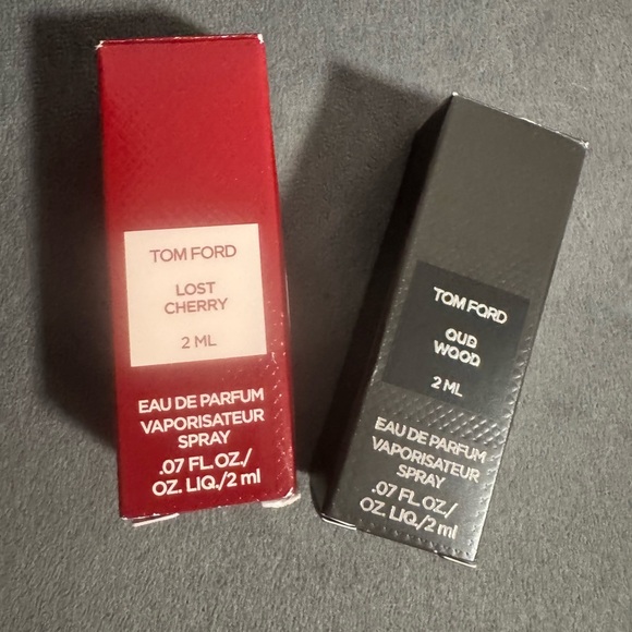 Experience Tom Ford's exquisite scents with this mini fragrance trio. Includes Oud Wood in black, Vanilla Sex in cream, and Lost Cherry in red. Ideal for travel or gifting.
