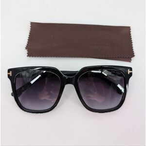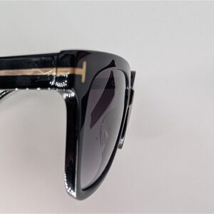 Experience timeless elegance with Tom Ford's black wayfarer sunglasses, featuring a sleek design and gradient-tinted lenses. These stylish accessories are perfect for adding a touch of sophistication to any outfit, with subtle metallic detailing on the temples for an extra hint of luxury.
