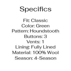 Tom James 44L 36x32 Green Houndstooth 3-Button Suit R489