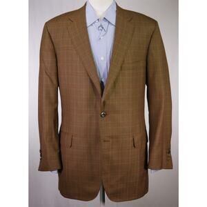 Tom James Custom Brown Windowpane Wool SIlk 2-Btn Sportcoat Blazer 42R