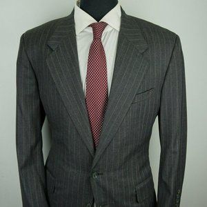 Tom James Filo A Mano Gray Pinstriped Wool 2 Piece Suit Jacket Pants Sz 42R