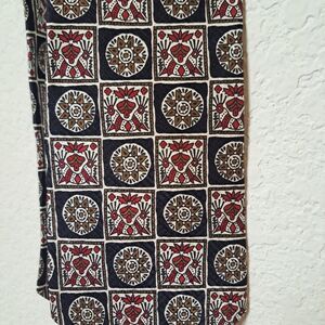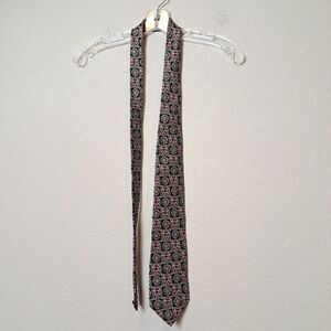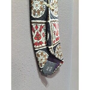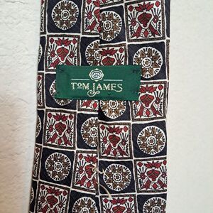 Tom James Men's All Silk Neck Tie Medallion Navy Blue Red Standard Length 57"