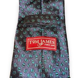 Tom James Navy & Teal Coffee Bean Made in USA Silk Tie