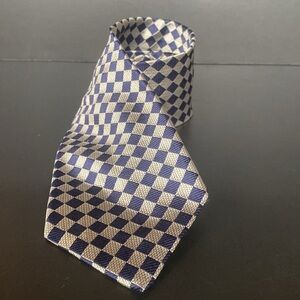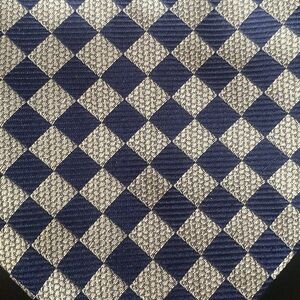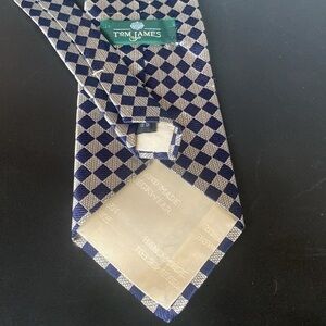 Tom James Silk Jacquard Hand Made Navy Silver Checkered Geo Tie
