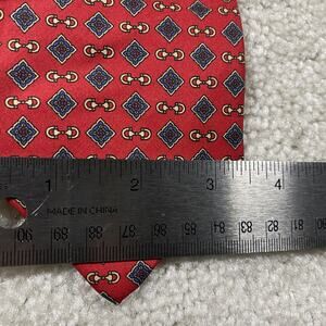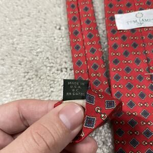 Vintage Silk Tie Tom James Tie Mens Red Silk Printed Twill Diamond Bit Pattern Made USA Classic Necktie