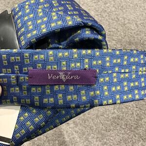 Tom James Ventura Blue Yellow Patterned Silk Tie NEW With Tags