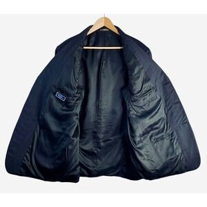 Tom James Wool 2PC Suit Mens 44L Pleated Cuff Pants 38x33 Gray Purple Stripe