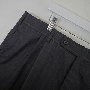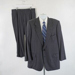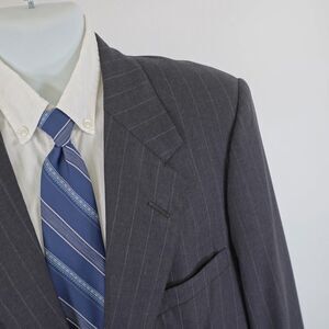 Tom James Ventura Bespoke Wool Gray Striped 2 Piece Suit 42R 38/28 Pleated Cuff
