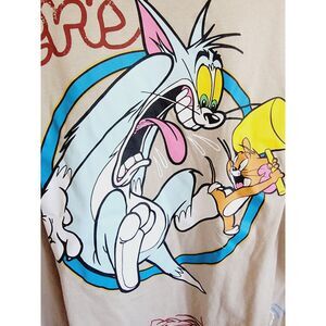 Tom & Jerry 2X Graphic Shirt Adult Khaki Long Sleeve Graffiti Print Stretch LS
