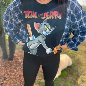 This Tom & Jerry Flannel Tee Rework is a must have addition to your wardrobe!