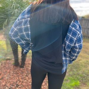Up-cycled from a Tom & Jerry Tee & a super soft black, blue & white flannel.