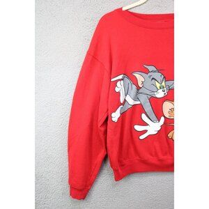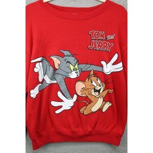 Tom & Jerry Red Sweatshirt-Size Small. Item is in Great Condition. The material is 60% Cotton and 40% Polyester. Laying flat measuring armpit to armpit it is 21'' and 23.5'' in length.