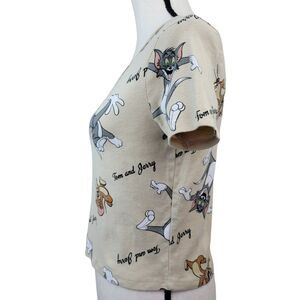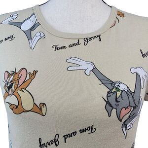 Tom & Jerry Tshirt Juniors Sz XL Beige Crop Top Graphic Retro Novelty Cartoon