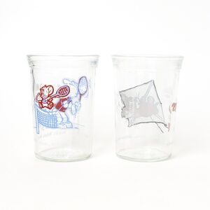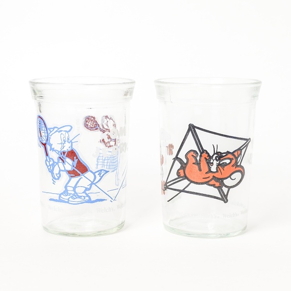 Tom & Jerry Vintage Glass Welchs Tennis Kite Flying Pair of 2