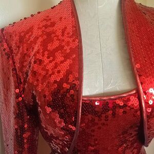 Imagine Dorothys Ruby Red Slippers made into a Dress and Jacket. This vintage piece is made with beautiful high quality sequins. They are as vibrant as if they were made yesterday.