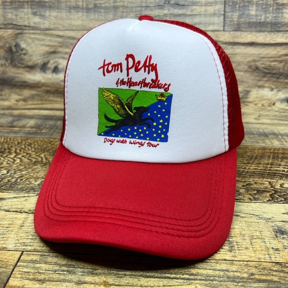 Tom Petty Mens Trucker Hat Red Snapback Dogs With Wings Tour 1995 Rock Ball Cap