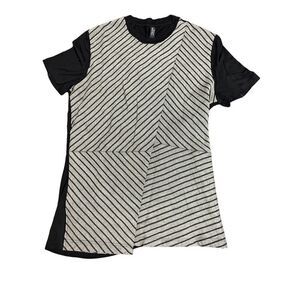Tom Rebl Women's Diagonal Black White Stripes Short Sleeve Tunic Top Size S