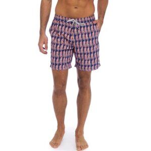 Tom & Teddy Men’s XL Lined Swim Trunks Navy Pink Polyester Beach Shorts