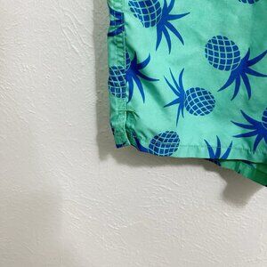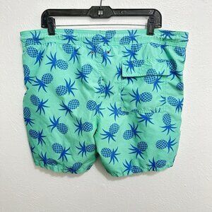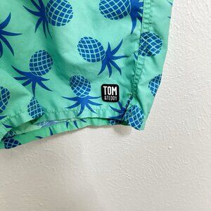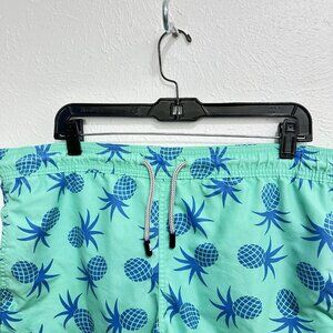 Tom Teddy Swim Trunks Green Blue Pineapple Print Liner Pockets Stretch Summer M