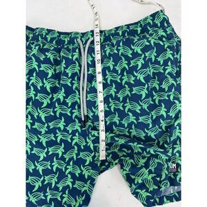 Tom & Teddy Swim Trunks Sea Turtle Print Men's Green Navy Board Shorts - Size XL