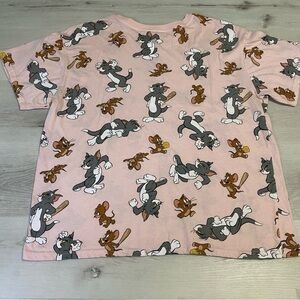 Tom and Jerry Graphic Tee, All Over Print, Pink, XL