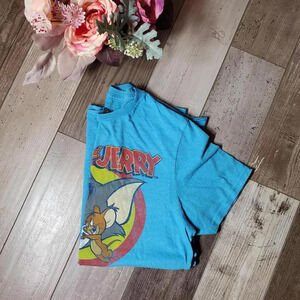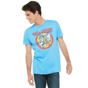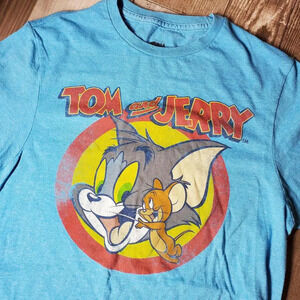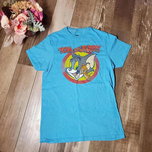 Tom and Jerry T-Shirt Blue Short Sleeve Men's Size Small