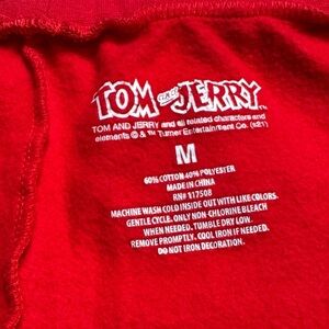 Enjoy comfort and style with these red athletic shorts featuring a playful Tom and Jerry design. Perfect for workouts or casual outings.
