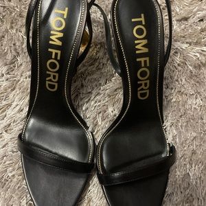 Only worn once, beautiful “that girl” sandal still smells like leather, includes original box, shoe bags and replacement heels. I am a US size 10. Tom Ford runs small and these fit perfect. Authentic Tom Ford