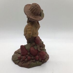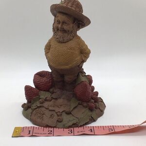 1984 #43 Tom Clark “Shorty” gnome. Shorty looks like a strawberry farmer pleased with his harvest in a yellow sweater with berries at his feet and straw hat on his head.